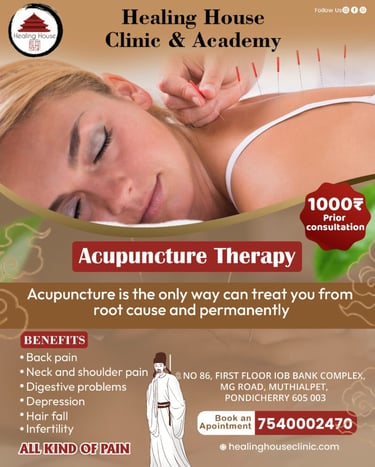 Founded by Marcia Gomes Yadav, a certified acupuncturist with over 15 years of experience, Healing House Clinic and Academy provides non-invasive treatments based on traditional Chinese medicine. We focus on root-cause healing for conditions like chronic pain, stress, and trauma through pulse and tongue diagnosis—no medical reports required.