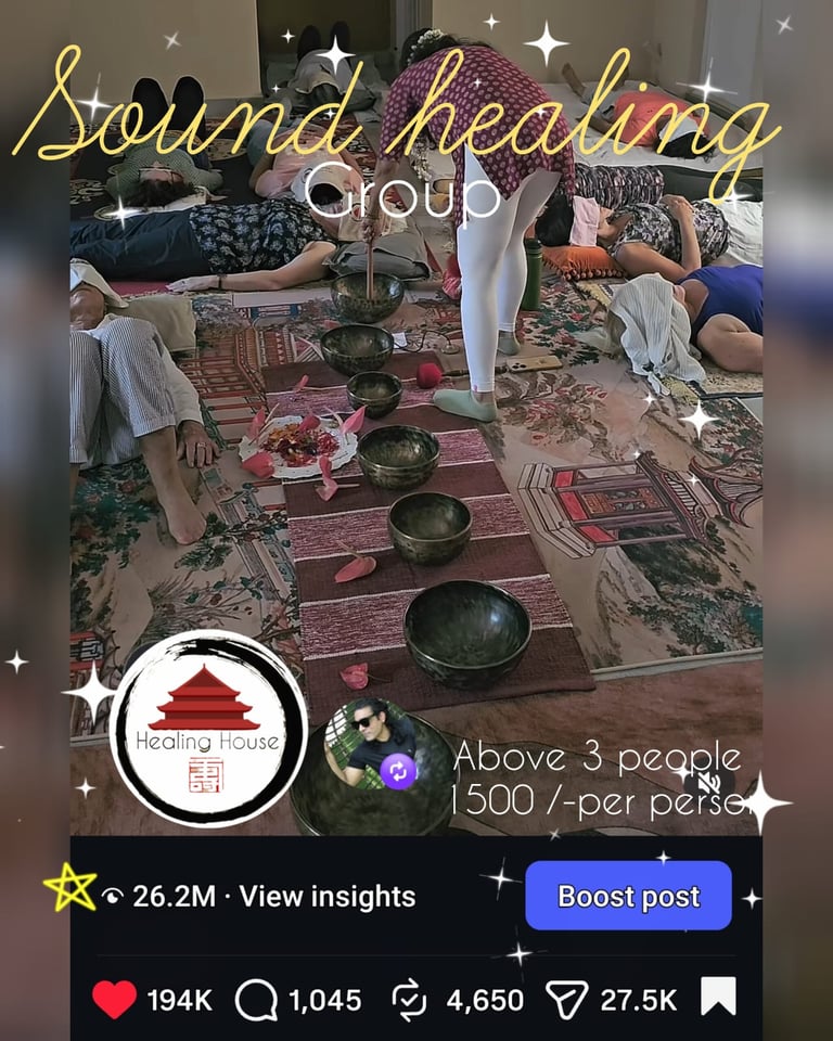 Sound healing is a practice rooted in ancient traditions (especially from the Himalayas/Tibet and India). It uses instruments like Tibetan singing bowls to produce resonant sounds and vibrations that promote deep relaxation, reduce stress, improve emotional balance, and support overall well-being. Participants typically lie down in a "sound bath," allowing the sounds to wash over and through them. Benefits include Reduced anxiety and tension, better sleep, pain relief, enhanced meditation and mindfulness, less stress.